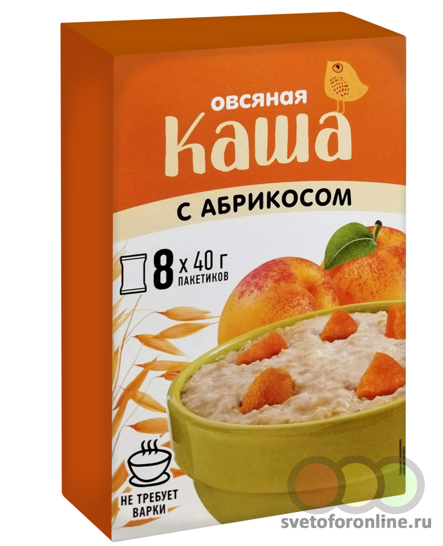 Каша овсяная абрикос/изюм в коробке 40 гр*8 шт. Стандарт ООО (Ижевск) (производитель) - Купить в магазине "Светофор" город Погар, ул.Полевая, 24/1
