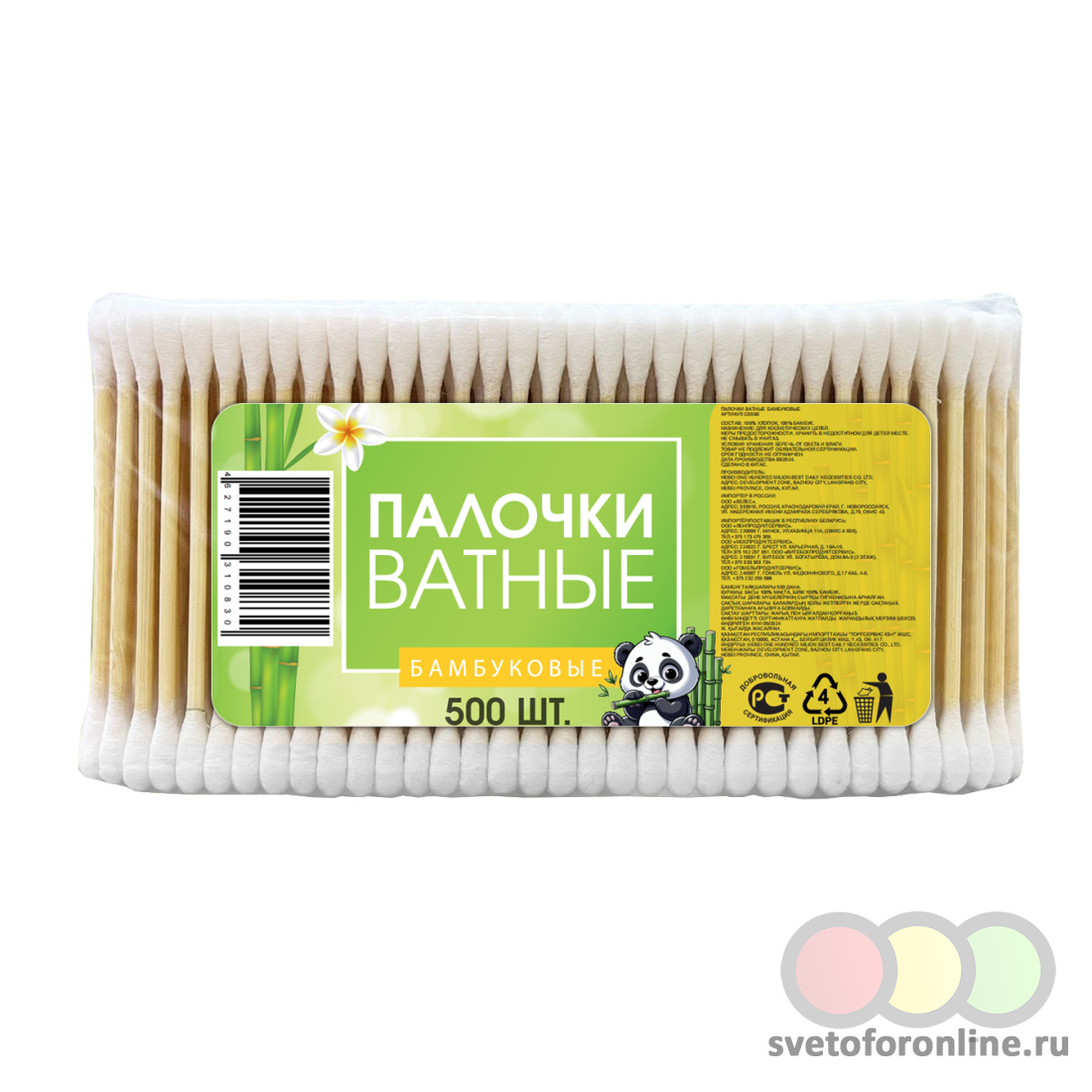 Палочки ватные бамбуковые 500шт. ВЕЛЕС ООО(Новороссийск) (производитель) - Купить в магазине "Светофор" город Погар, ул.Полевая, 24/1