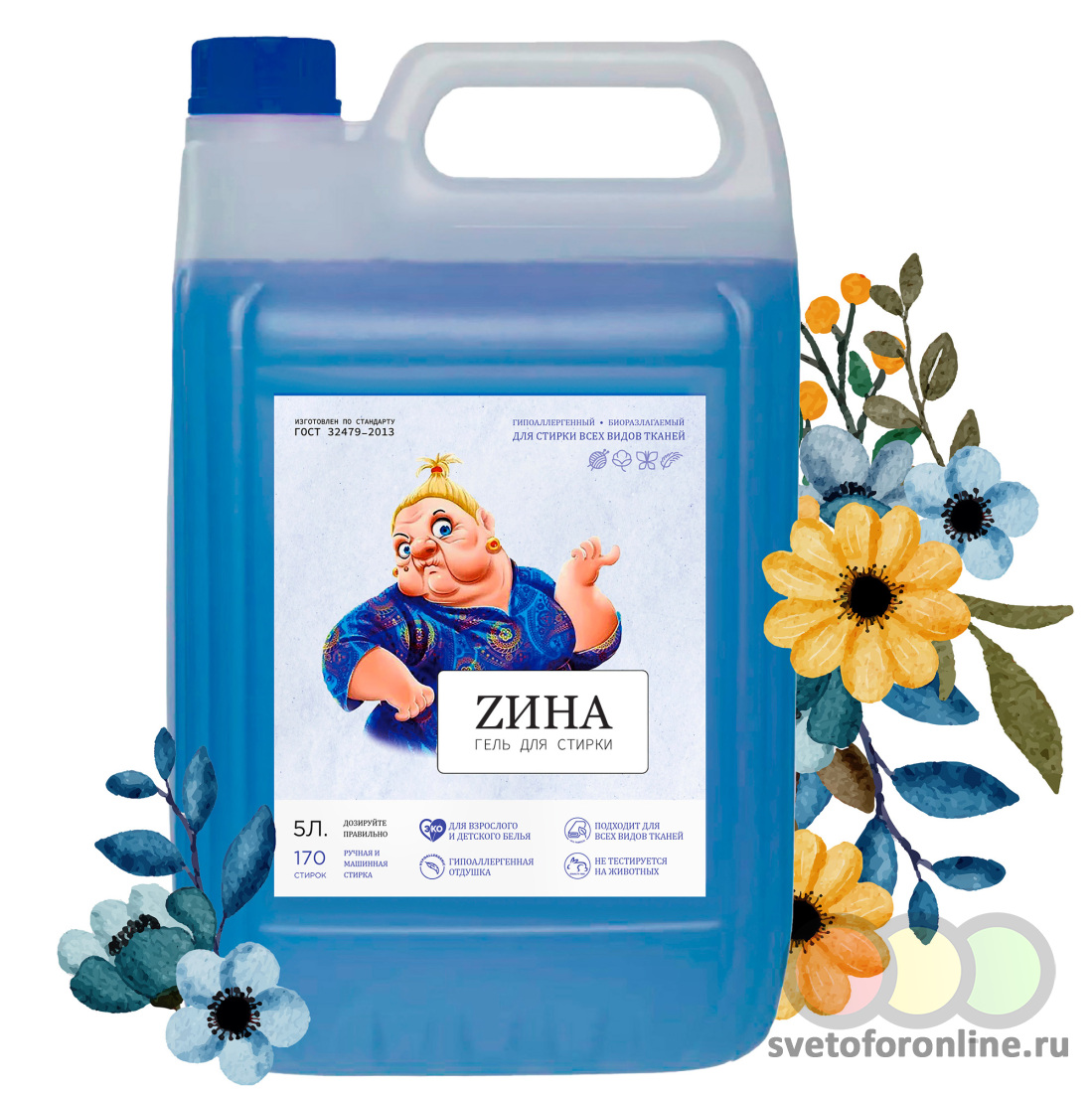 Гель для стирки дет. и взр. белья, всех видов тканей ZINA, 5,0 л. СГ РУС ООО(производитель) - Купить в магазине "Светофор" город Погар, ул.Полевая, 24/1
